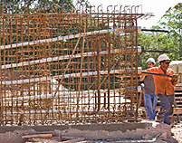 Descrição: Bainha de aço galvanizado para protensão aderente. As bainhas são tubos dentro dos quais a armadura de protensão é colocada, utilizados em protensão com aderência posterior ou também sem aderência. Para criar aderência com a armadura de protensão, as bainhas são preenchidas com calda de cimento. As bainhas podem ter diâmetros de 35mm à 150mm com espessura de 0,2 a 0,4mm. As bainhas possuem transversalmente uma superfície ondulada em hélice para que possam utilizar luvas rosqueadas nas emendas. As ondulações transversais enrijecem a bainha melhorando a aderência entre o concreto e a nata de injeção. As bainhas podem abrigar até 31 cordoalhas. Fonte: Protenfor.